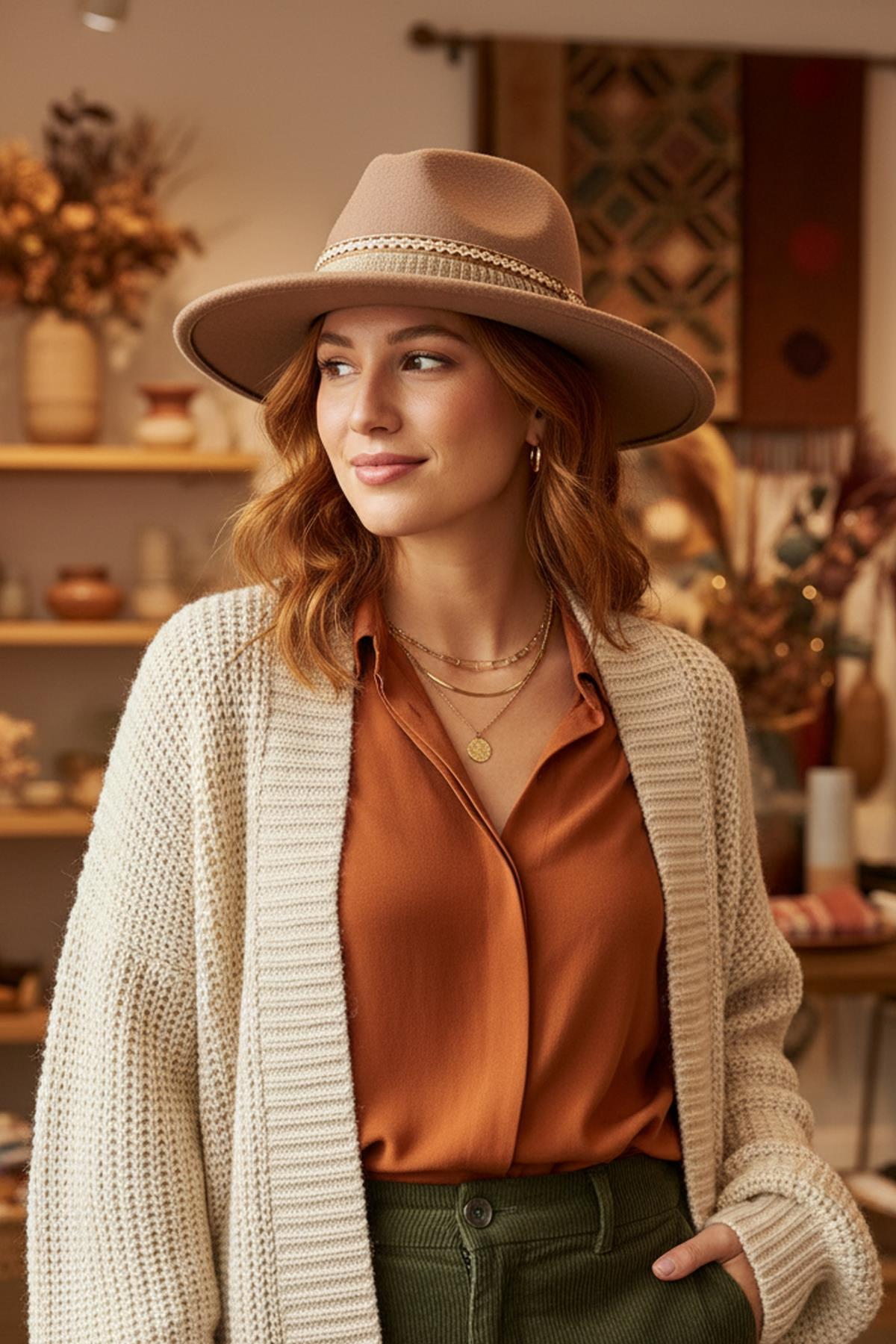 • Stil Notu: Bu şapkayı; katmanlı kolyeleriniz, dökümlü elbiseleriniz veya kot pantolon ve oversize kazak kombinlerinizle birleştirerek zahmetsiz şıklığın tadını çıkarın.
