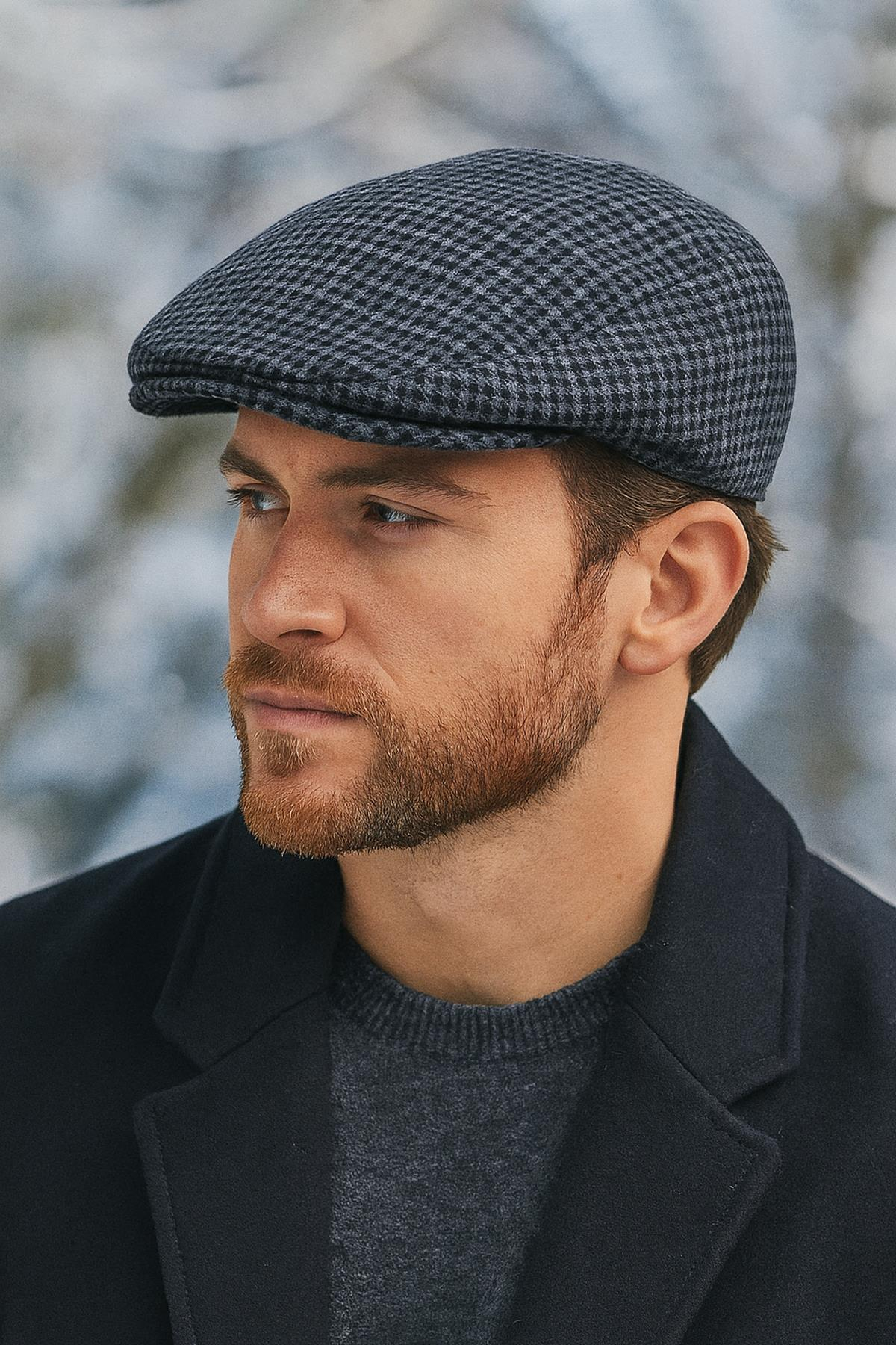Erkek Kazayağı Kasket Şapka – Füme Desenli Retro Flat Cap (KLH7549)